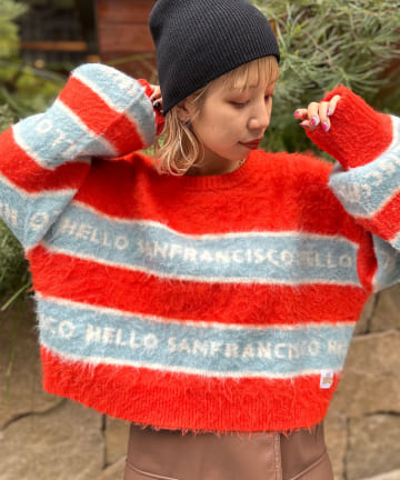 【HELLO.SANFRANCISCO/ハローサンフランシスコ】ブラッシングジャガードロゴニット