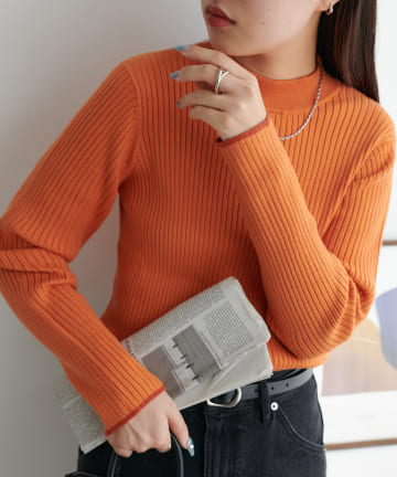 【もちもちとした触り心地♪/26色展開/2サイズ】モチモチリブパイピングハイネック《WEB限定》