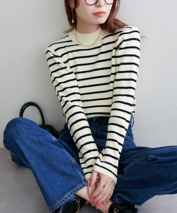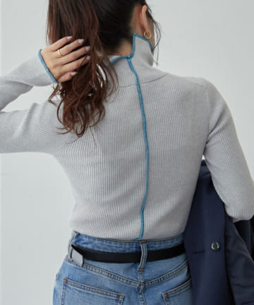 【新色追加】アンチピリング配色ステッチボーダータートルニット