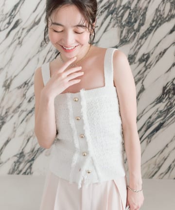 予約【セットアップ対応可】レースヘムスリーブレスニット