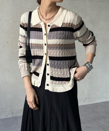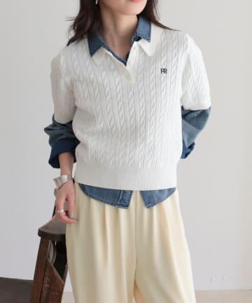 【大人気シリーズの新型登場!】FR刺しゅうケーブル柄半袖ポロ衿プルオーバーニット