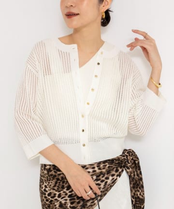 《手洗い可能》メッシュスパンコール6分袖カーディガン