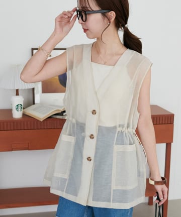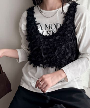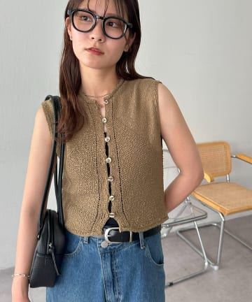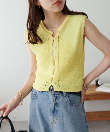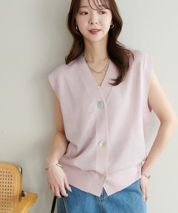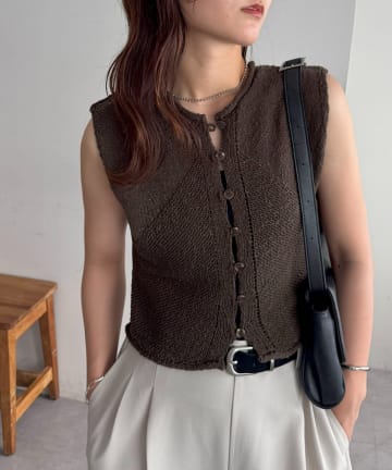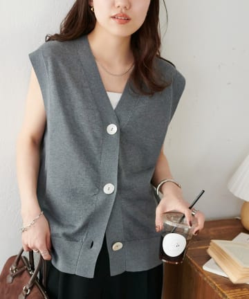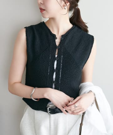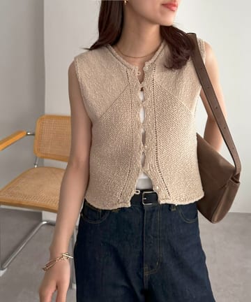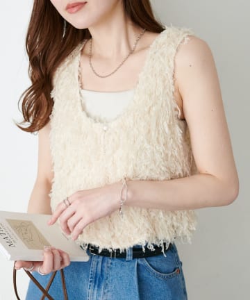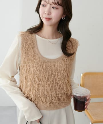 【シーズンレスに活躍◎/WEB限定】USコットンフリンジ深Vベスト