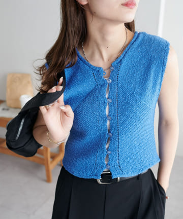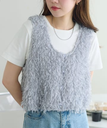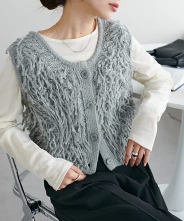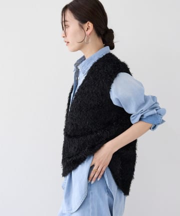 【こなれ感UP/365日活躍!】前後2WAYフェザーヤーンショートベスト