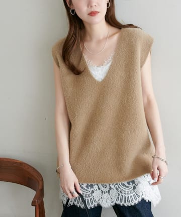 【ベストセラー/着回し万能/WEB限定】フェザーヤーンチュニックベスト《スリットなし》