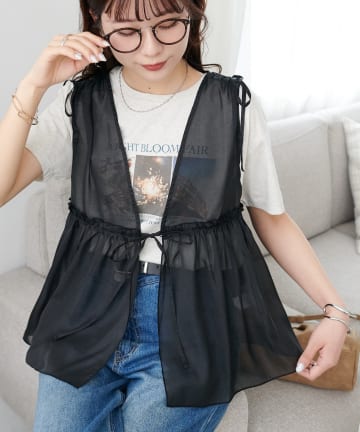 《オールシーズン使える!》【umm.】ギャザーリボン使いノースリブラウス