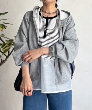 【新色追加】【WEB限定/キレイめ上品】スポンジダンボールZIPパーカーカットソー