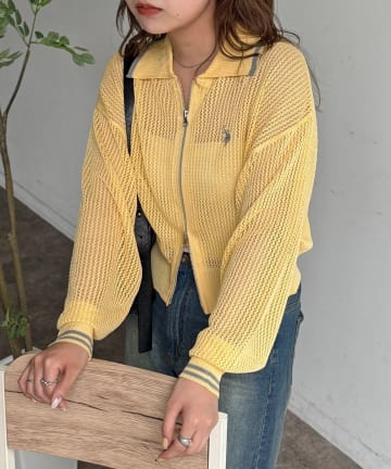 【U.S. POLO ASSN.】襟付きメッシュカーディガン