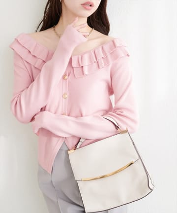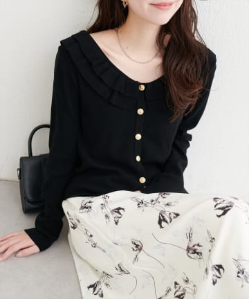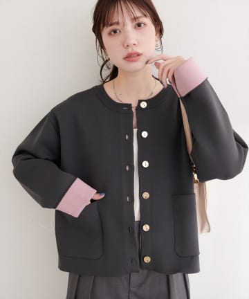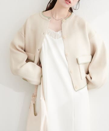 【モンチッチ×natural couture】袖ファーリブカーデ