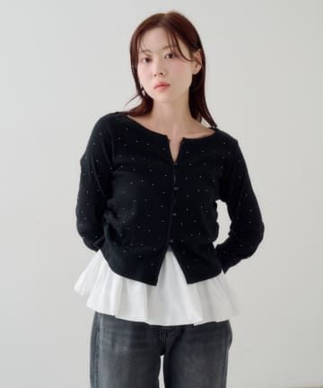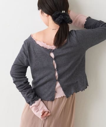 【4色展開】B フラワーカットソーギャザーカーディガン