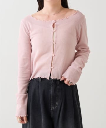 【華奢見えデザイン】ワイドネッククリアボタンカーディガン