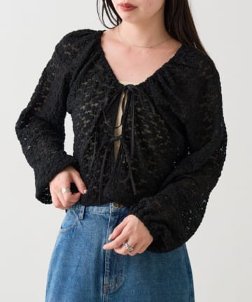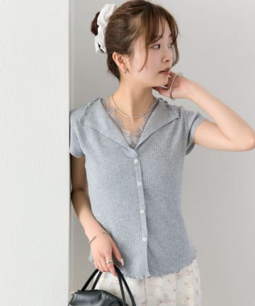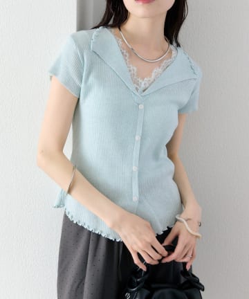 【chipiセレクト】ハートボタン袖レースラメカーデ