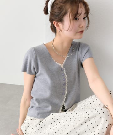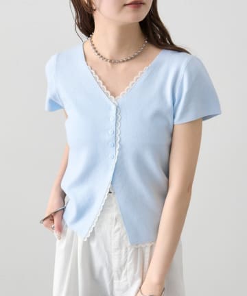 【新色追加/2サイズ展開/5色展開】コットンレースチビカーディガン