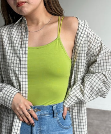 【WEB限定】ワンショルレイヤードカップ付タンクトップ