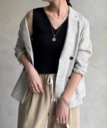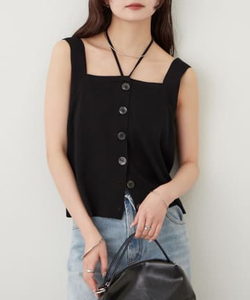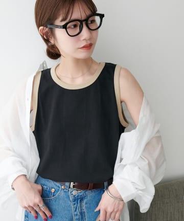 【リバイバル/Du noir】リネンタッチスクエアタンク