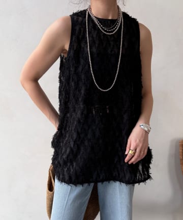 【フェミニンなムードを演出】チュールリブタンクトップ