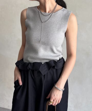 【フェミニンなムードを演出】チュールリブタンクトップ