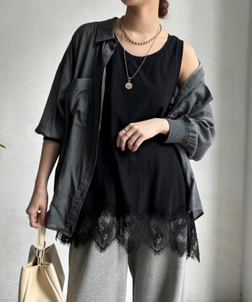 【プチプラ/即着映え!】裾レースノースリプルオーバー