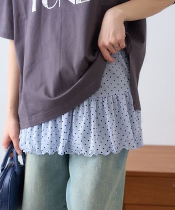 【2WAY】フロッキードットチュール裾フリルキャミ