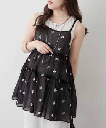【4色展開/無地/ドット柄】シアーフリルキャミ