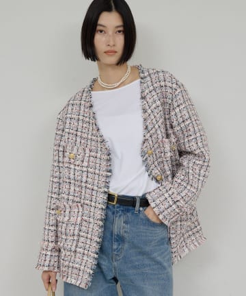 【お気に入り総選挙1位!】【セットアップ対応】ノーカラーツイードジャケット