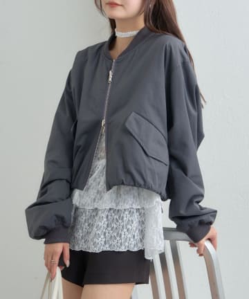 サテンショートブルゾン