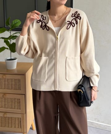 刺繍ニットジャケット