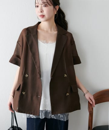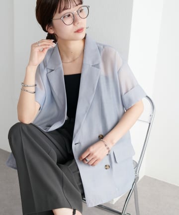 【程よい透け感】半袖シアーテーラードジャケット《WEB限定》