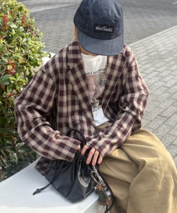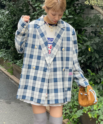 【HELLO.SANFRANCISCO/ハローサンフランシスコ】フラワー釦チェックオーバージャケット