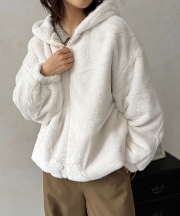 【上品見え】ふわふわファーフードジャケット