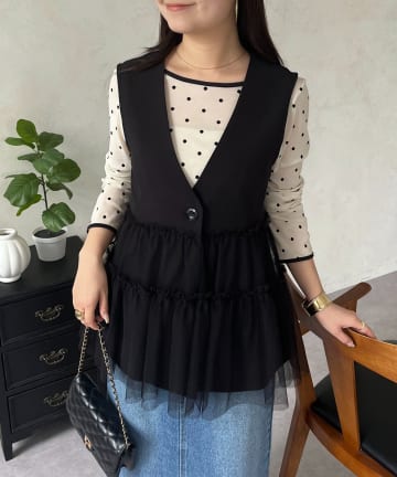 ティアードチュールVネックペプラムジレ