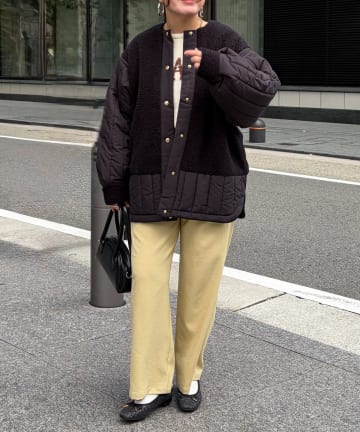 ボア×ストライプキルティングコート