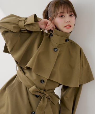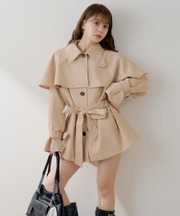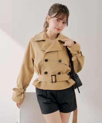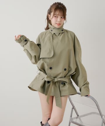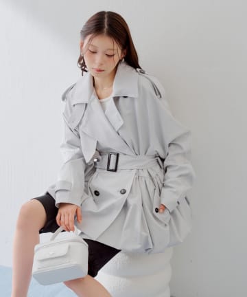 【SMサイズ展開あり】ウエストベルトプリーツミニトレンチ