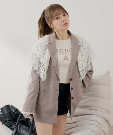 レース衿ゆるたぽテーラードジャケット