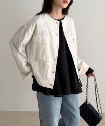 ニュアンスデニムノーカラージャケット