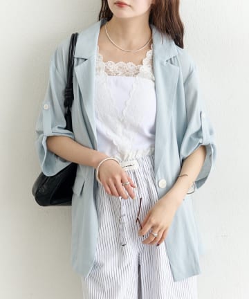 【程よい透け感】半袖シアーテーラードジャケット《WEB限定》