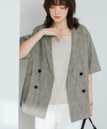 予約【こなれた印象に】バンピーチェックハーフスリーブジャケット/5月中旬お届け予定