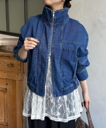 スタンドネックステッチデニムジャケット