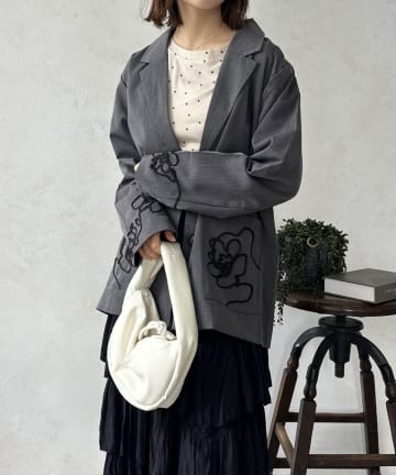 〈osono〉べこべこ金釦綿麻テーラードジャケット