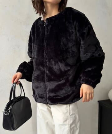 フェイクファーノーカラーブルゾン