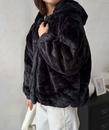 フード付きフェイクファーアウター
