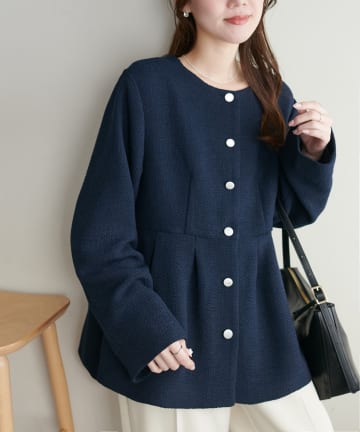 襟切替コットンツイードジャケット