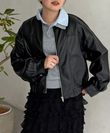 フェイクレザージップショートブルゾン