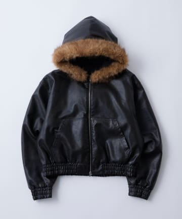 【26SS】ヴィンテージライクレザーファーフードブルゾン