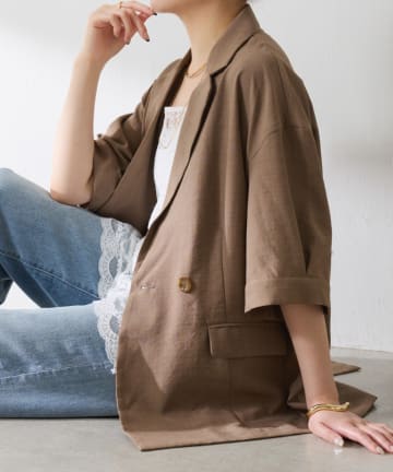 【こなれ感抜群/接触冷感機能付き】ワイドショルダージャケット