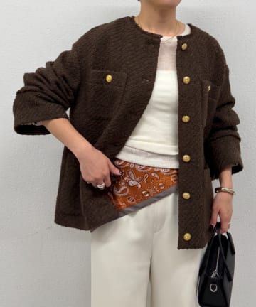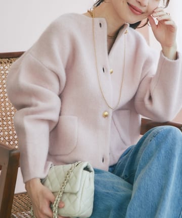 《大人のこなれ感》中綿ニット切替ノーカラージャケット