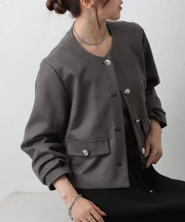 【WEB限定】ラッセルノーカラー羽織ジャケット