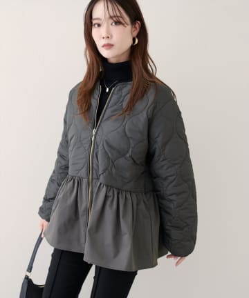 【WEB限定】サイドZIPノーカラー中綿ジャケット