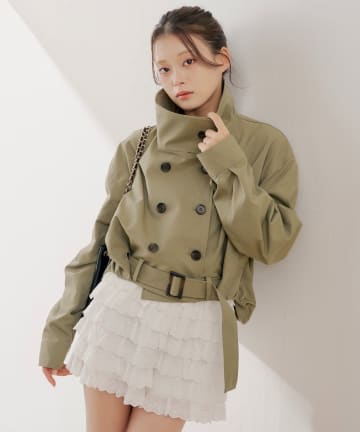 【SMサイズ展開あり】ウエストベルトプリーツミニトレンチ