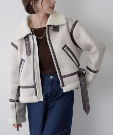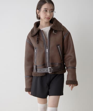 【Neucon/ニューコン】ヴィンテージムートンクロップドワイドブルゾン
